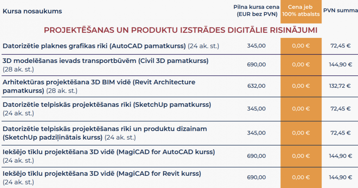 - Arhitektūras projektēšana 3D BIM vidē (Revit Architecture pamatkurss)