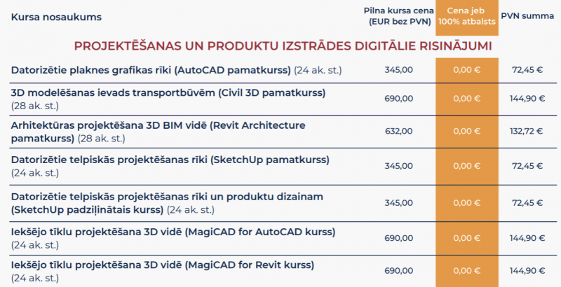 InfoEra Latvia sadarbībā ar Datorzinību Centru šī projekta ietvaros piedāvās 7 dažādus apmācības kursus: