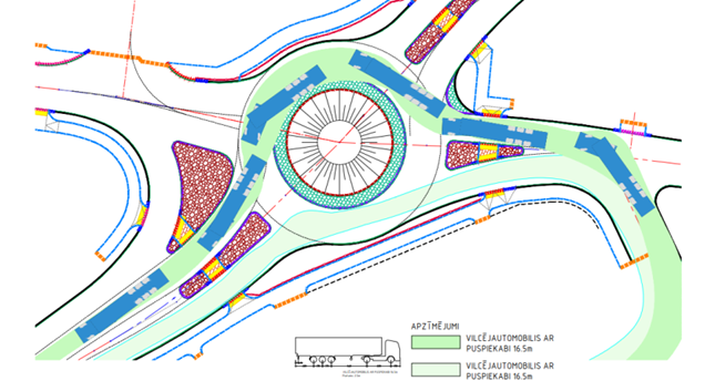 Viens no jaunākiem projektiem – veikala “Lidl Latvija” stāvlaukumu projektēšana Ogres pilsētā. Tika projektēta rotācijas apļa izbūve Rīgas ielas un Kalna prospekta krustojumā. Izaicinājums: nestandarta, maza izmēra aplis. Lai nodrošinātu visu transportlīdzekļu, tai skaitā, kravas automašīnu un autobusu izbraukšanu, tika izmantots rīks AutoPath.